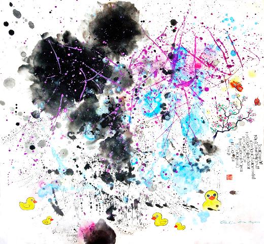 Acrylic, Gouache, Ink, Sharpie Ink Marker on Xuan Paper.